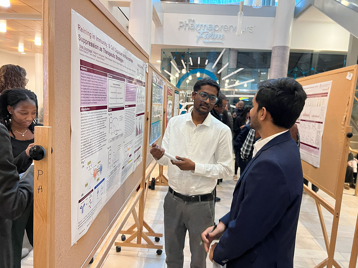 The event highlighted the MS program’s breadth, with projects spanning oncology, neurodegenerative disease, infectious disorders, and advanced drug delivery systems. Students explored topics such as population pharmacokinetic modeling for pediatric malaria treatments, engineering hybrid nanoparticles to combat sepsis, and developing 3D organoid models to study pulmonary fibrosis. Others investigated antibody-drug conjugates for lymphoma and innovative strategies for Alzheimer’s diagnostics, reflecting the program’s commitment to addressing complex health challenges through multidisciplinary approaches.